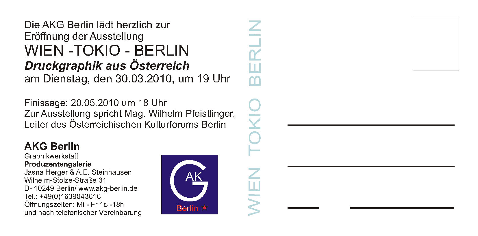 AKG Berlin: WIEN-TOKIO-BERLIN, Druckgraphik aus Österreich, 31.3. – 10.5.2010