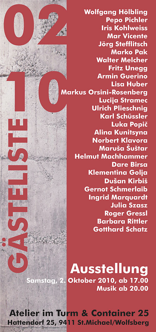 Roland Böck, Wolfgang Buchta, G.R.A.M., Armin Guerino, Michael Hedwig, Pablo Picasso, André Villiers, Jasna Herger, Udo Klapf, Andreas Leikauf, Sabine Luger, Manabe Anton, Thomas Nemec, Eric Neunteufel, Konrad Planegger, Michael Schneider, David Smyth, A.E. Steinhausen