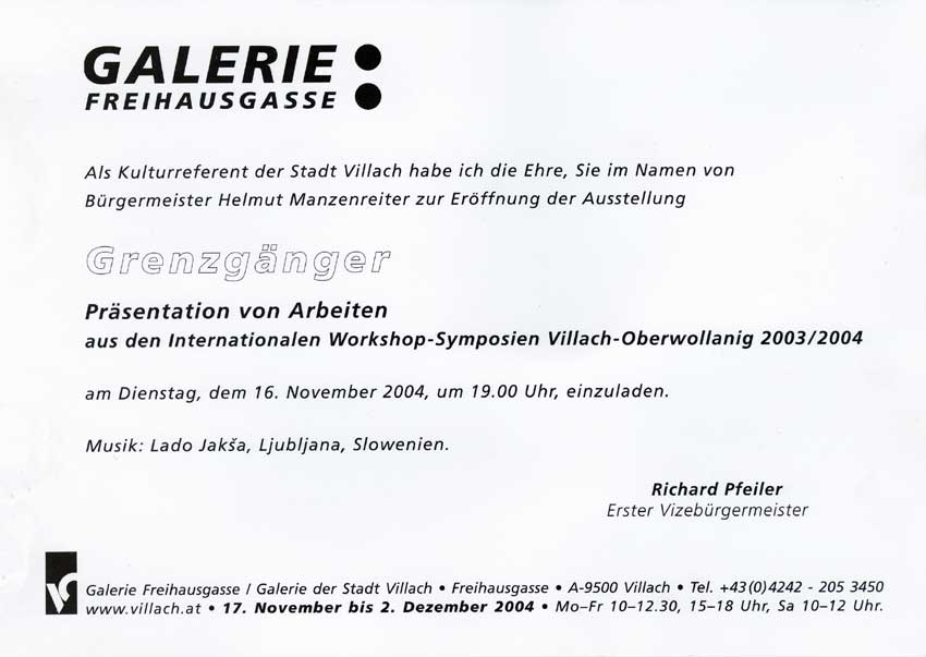 2004 · Ausstellung: GRENZGÄNGER, Galerie Freihausgasse, Villach